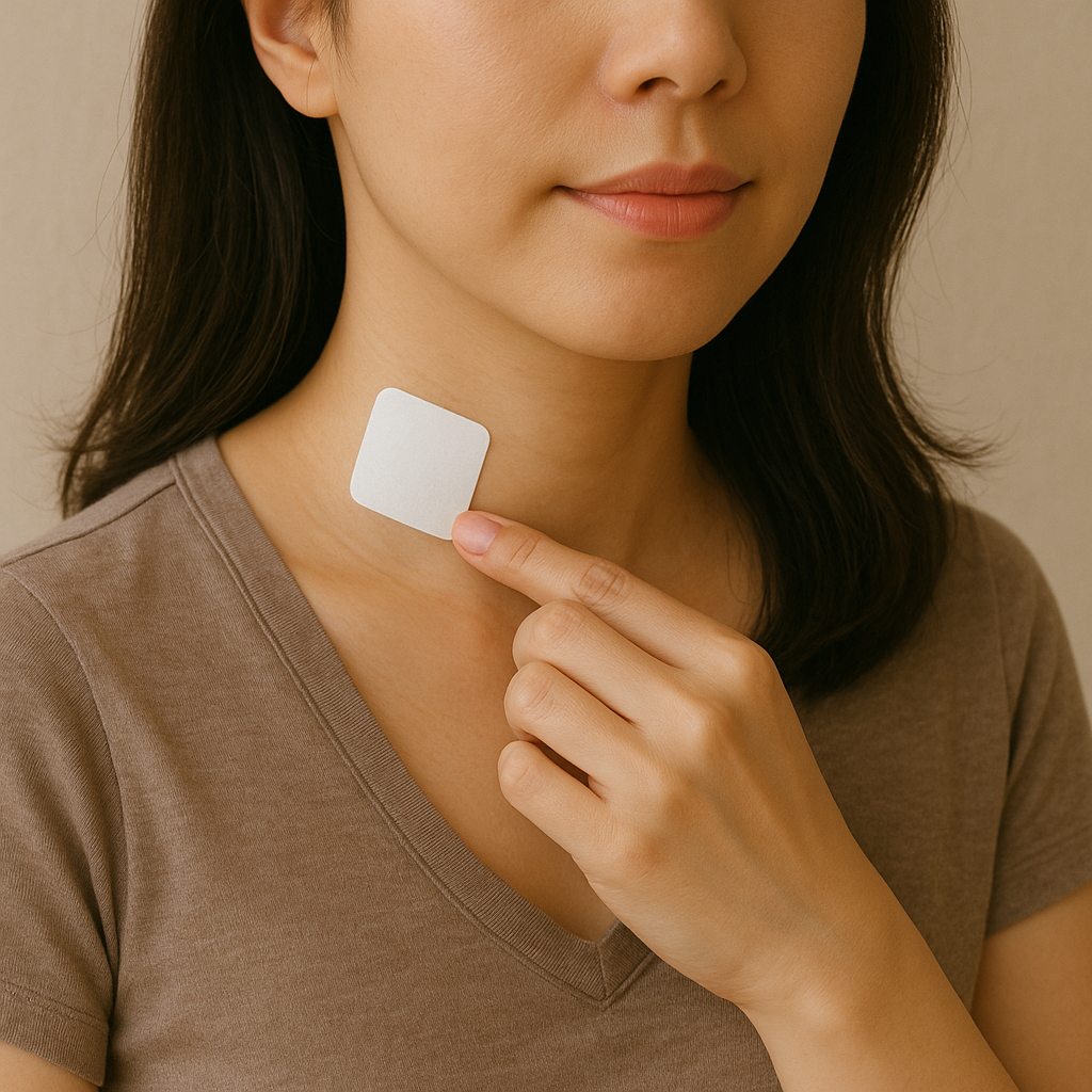 •シートの端からパッチをはがし、胸や腕の内側など皮膚の柔らかい場所、または気になる箇所に貼って下さい。